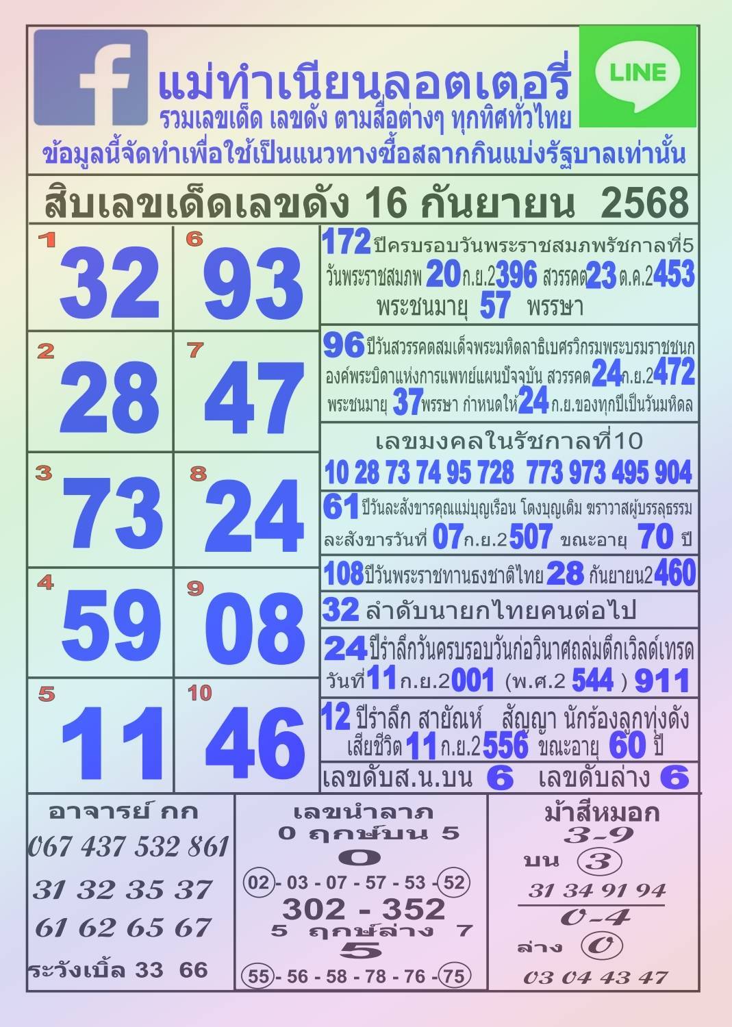 หวยแม่ทำเนียน 16/9/68 รวมเลขเด็ดหวยดัง 10 อันดับงวดนี้