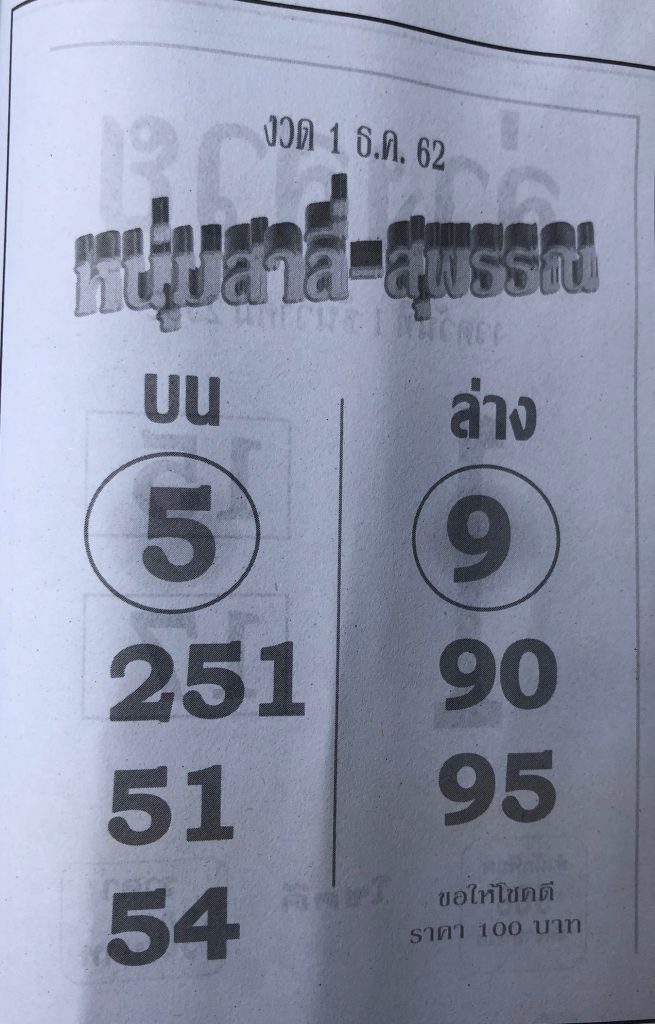 หวยซองสำนัก หนุ่มสาลี่-สุพรรณ 1/12/62
